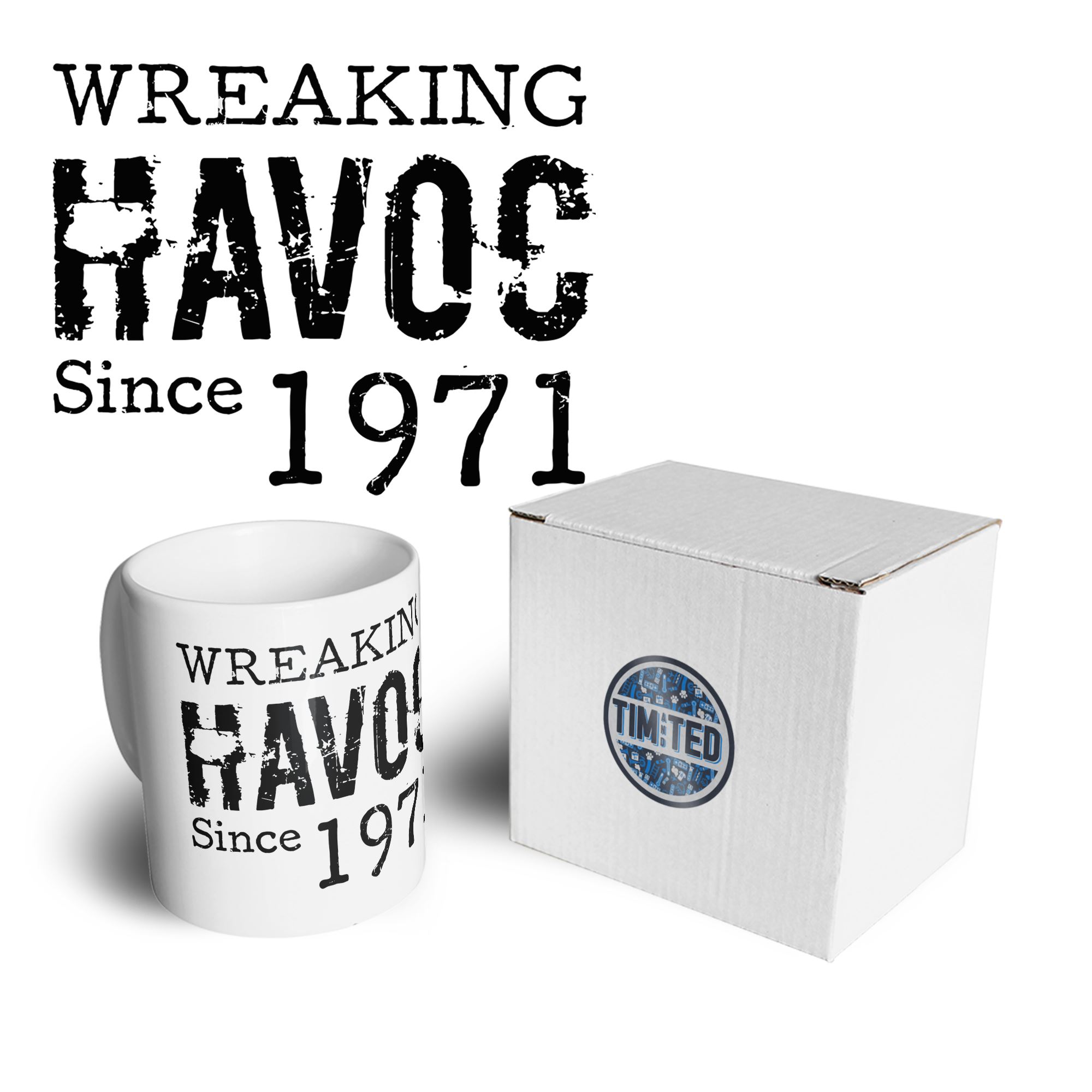 Are you looking for some special gift 50th Birthday Mug Wreaking Havoc Since 1971 Coffee Tea Cup for your friends, your father, your mother, son, boyfriend, girlfriend? We have this idea for you. This product 50th Birthday Mug Wreaking Havoc Since 1971 Coffee Tea Cup is perfect for you. Our T-shirt made of ringspun cotton for smoothness and body, and added rayon and polyester for extra stretch, drape, and breathability, this will be your new favorite t-shirt.