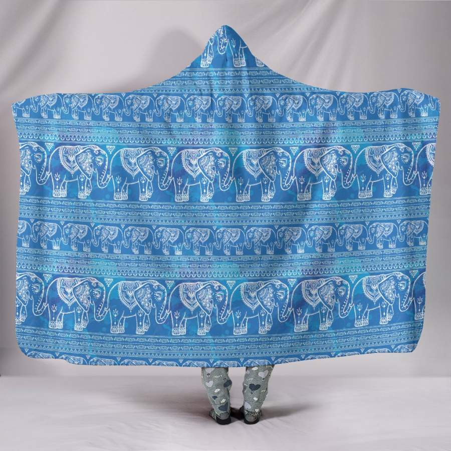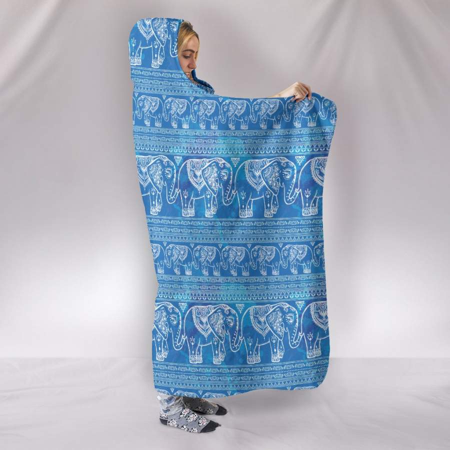 Blue Elephants Hooded Blanket