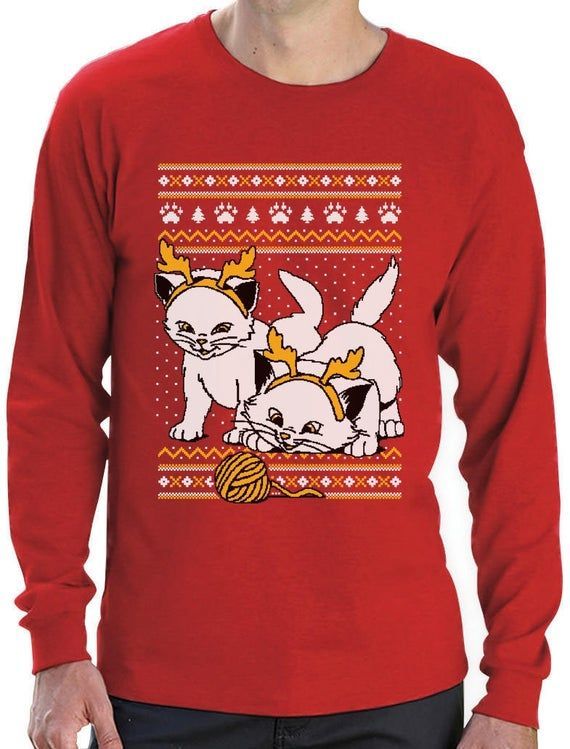 Are you looking for some special gift Cats With Reindeer Antler Headband Ugly Xmas Men S Long Sleeve Shirt for your friends, your father, your mother, son, boyfriend, girlfriend? We have this idea for you. This product Cats With Reindeer Antler Headband Ugly Xmas Men S Long Sleeve Shirt is perfect for you. Our T-shirt made of ringspun cotton for smoothness and body, and added rayon and polyester for extra stretch, drape, and breathability, this will be your new favorite t-shirt.