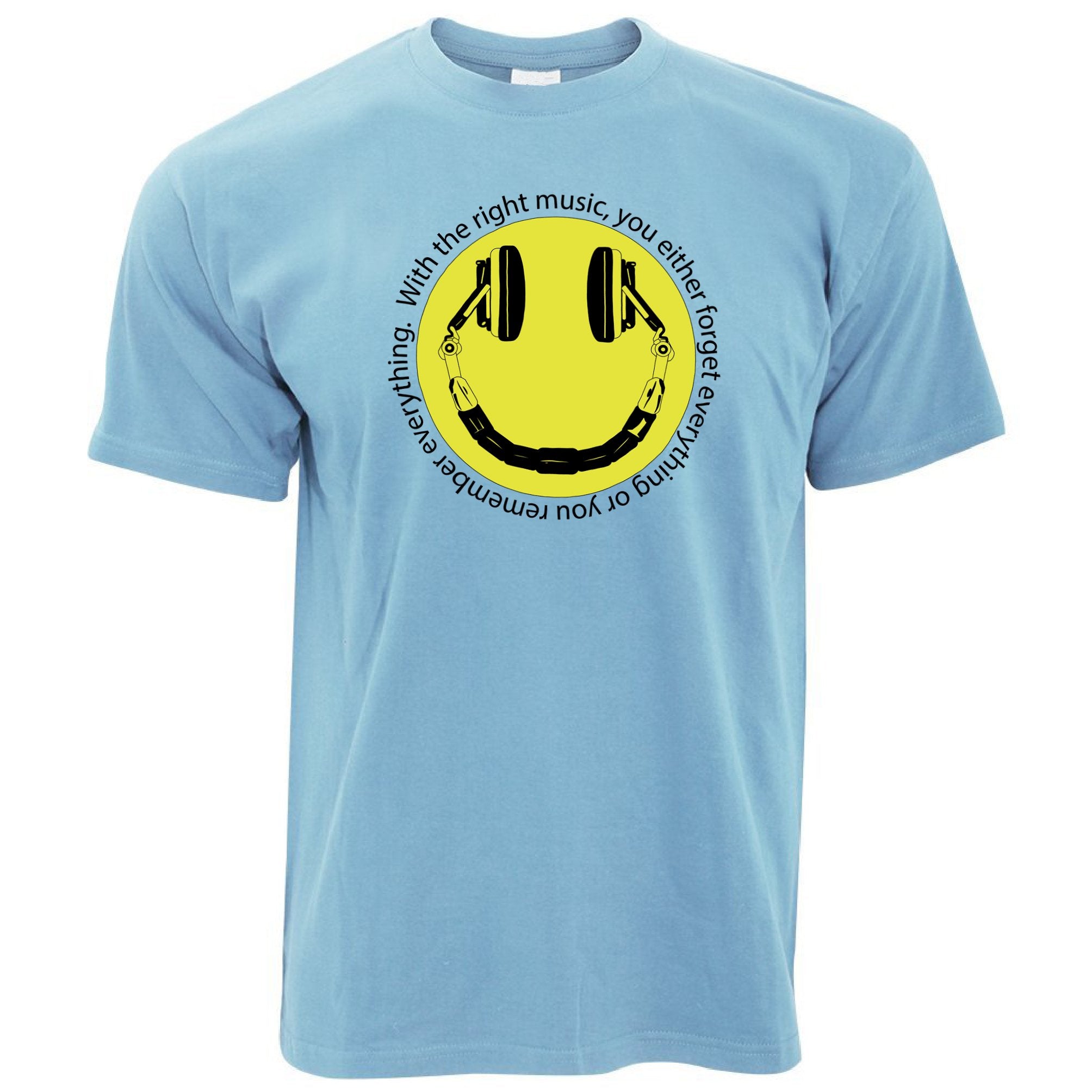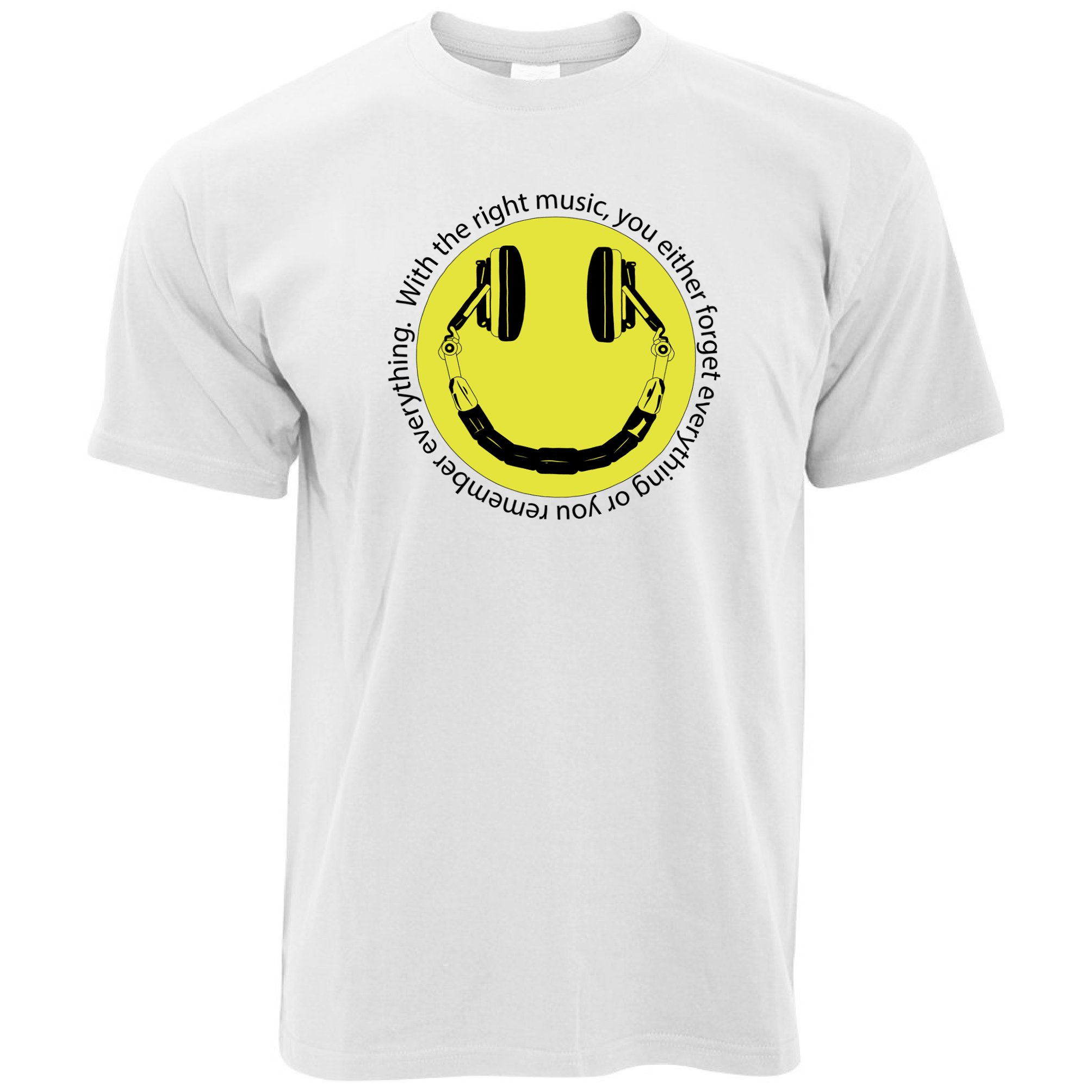 Are you looking for some special gift Headphones T Shirt Smile Face With The Right Music for your friends, your father, your mother, son, boyfriend, girlfriend? We have this idea for you. This product Headphones T Shirt Smile Face With The Right Music is perfect for you. Our T-shirt made of ringspun cotton for smoothness and body, and added rayon and polyester for extra stretch, drape, and breathability, this will be your new favorite t-shirt.