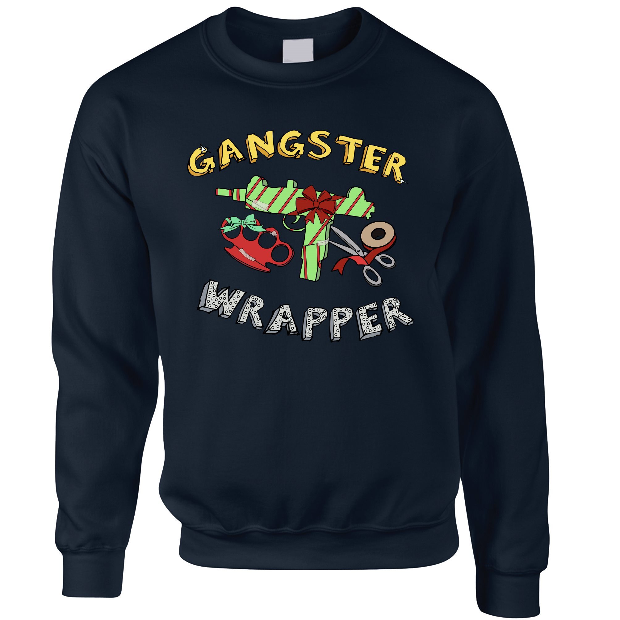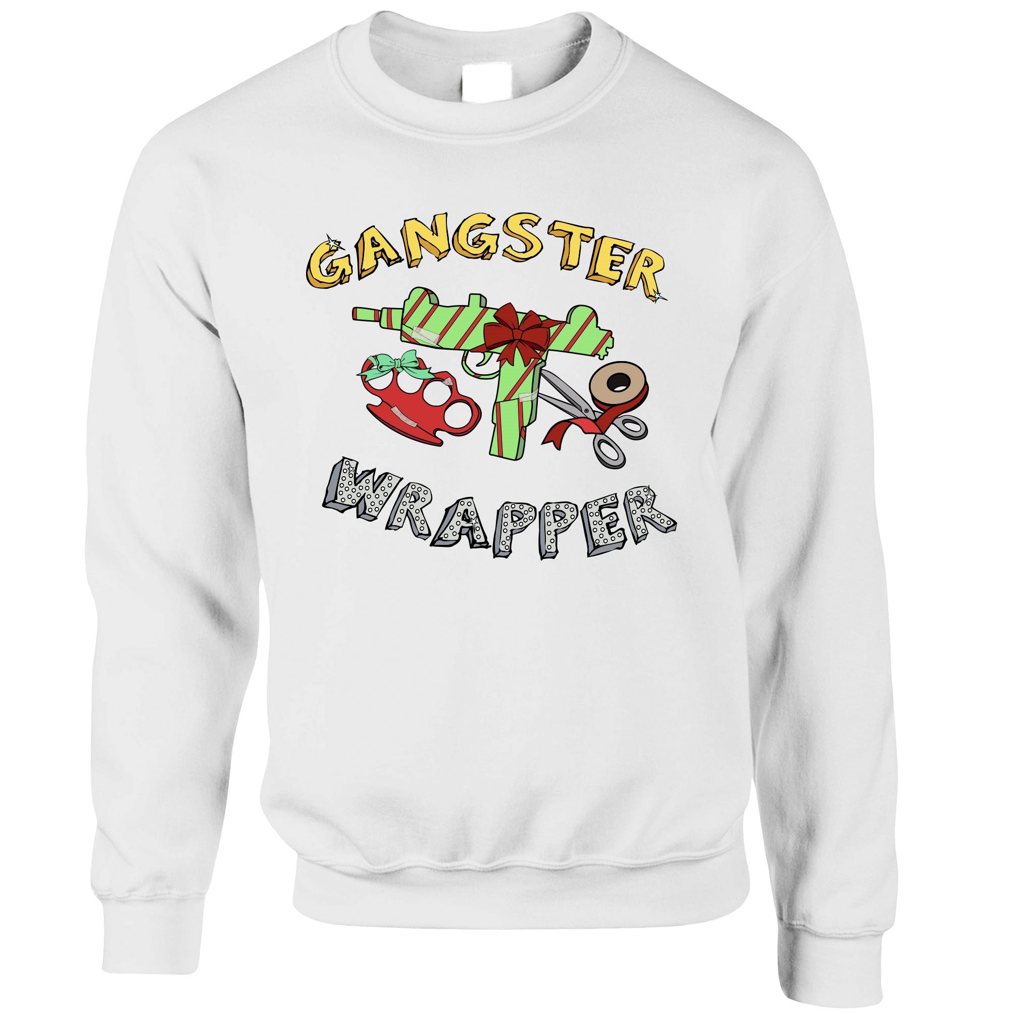 Are you looking for some special gift Novelty Christmas Jumper Gangster Wrapper Xmas Pun Sweatshirt Sweater for your friends, your father, your mother, son, boyfriend, girlfriend? We have this idea for you. This product Novelty Christmas Jumper Gangster Wrapper Xmas Pun Sweatshirt Sweater is perfect for you. Our T-shirt made of ringspun cotton for smoothness and body, and added rayon and polyester for extra stretch, drape, and breathability, this will be your new favorite t-shirt.