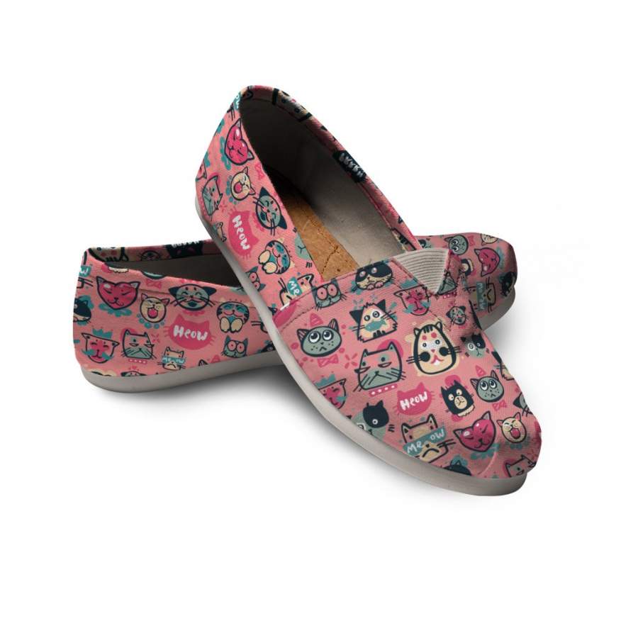 Style: Womens Casual Shoes - Canvas - Pink Meow Cat Casual Shoes