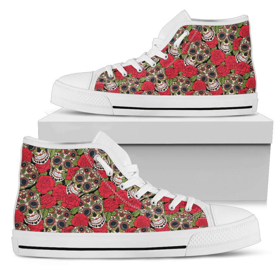 Rose Sugar Skull High Top Shoes