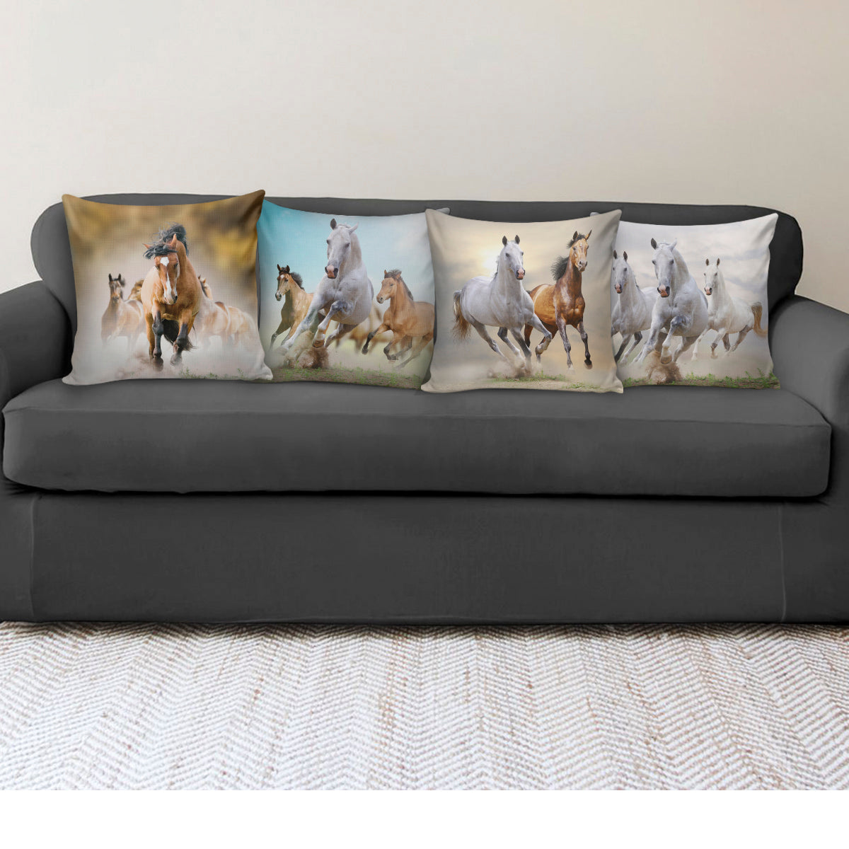 Are you looking for some special gift Running Horses Pillow Covers for your friends, your father, your mother, son, boyfriend, girlfriend? We have this idea for you. This product Running Horses Pillow Covers is perfect for you. Our T-shirt made of ringspun cotton for smoothness and body, and added rayon and polyester for extra stretch, drape, and breathability, this will be your new favorite t-shirt.