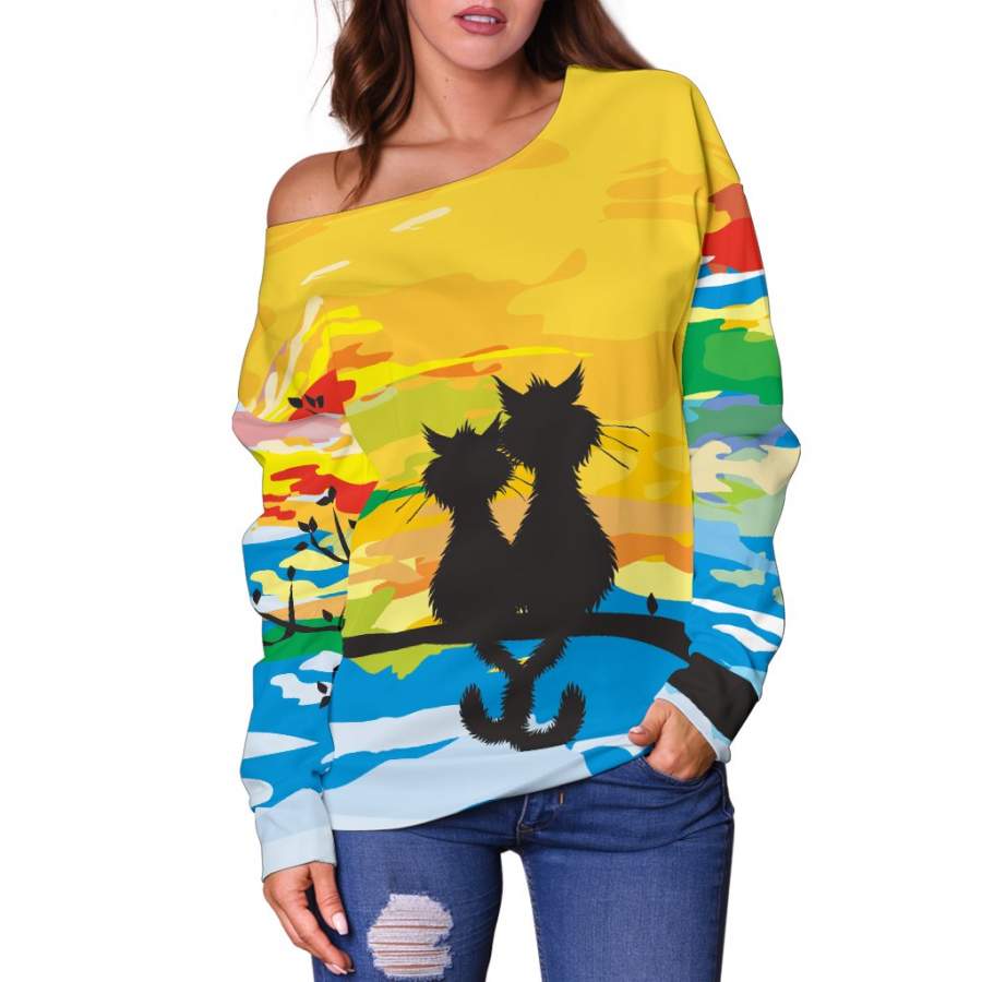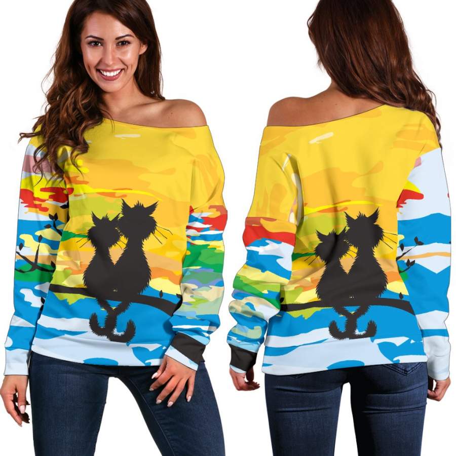 Are you looking for some special gift Sunset Cat Off Shoulder Hoodie for your friends, your father, your mother, son, boyfriend, girlfriend? We have this idea for you. This product Sunset Cat Off Shoulder Hoodie is perfect for you. Our T-shirt made of ringspun cotton for smoothness and body, and added rayon and polyester for extra stretch, drape, and breathability, this will be your new favorite t-shirt.