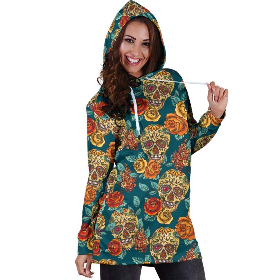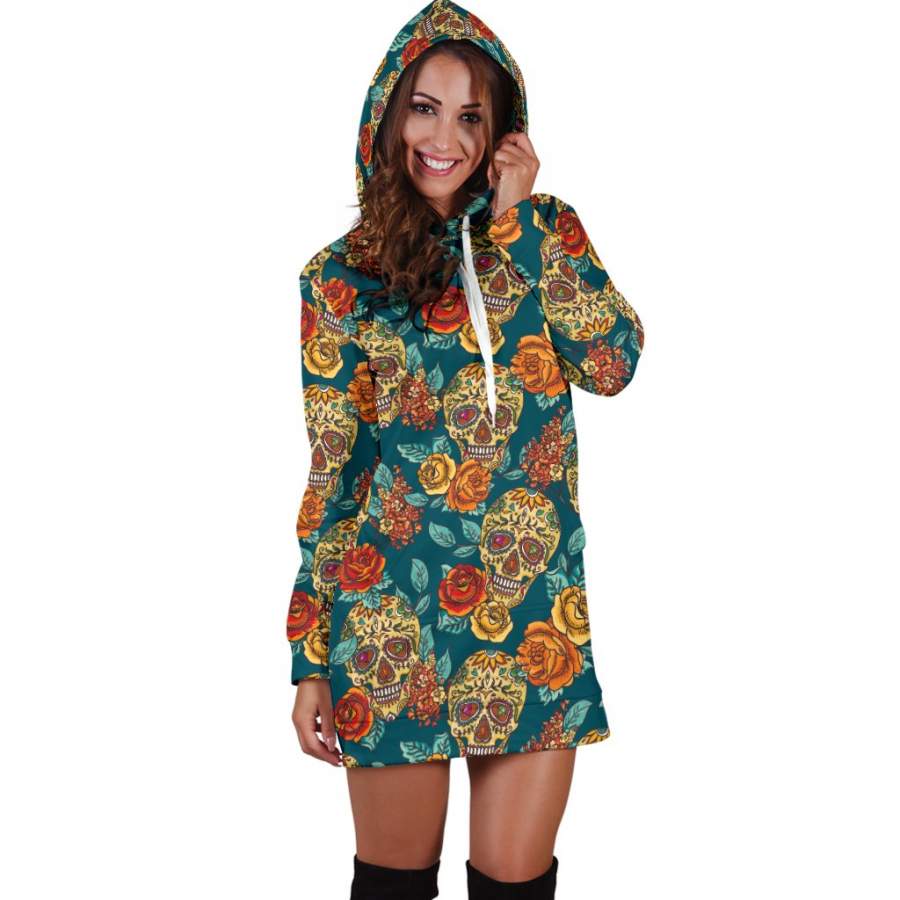 Are you looking for some special gift Teal Sugar Skull Women’s Hoodie Dress for your friends, your father, your mother, son, boyfriend, girlfriend? We have this idea for you. This product Teal Sugar Skull Women’s Hoodie Dress is perfect for you. Our T-shirt made of ringspun cotton for smoothness and body, and added rayon and polyester for extra stretch, drape, and breathability, this will be your new favorite t-shirt.