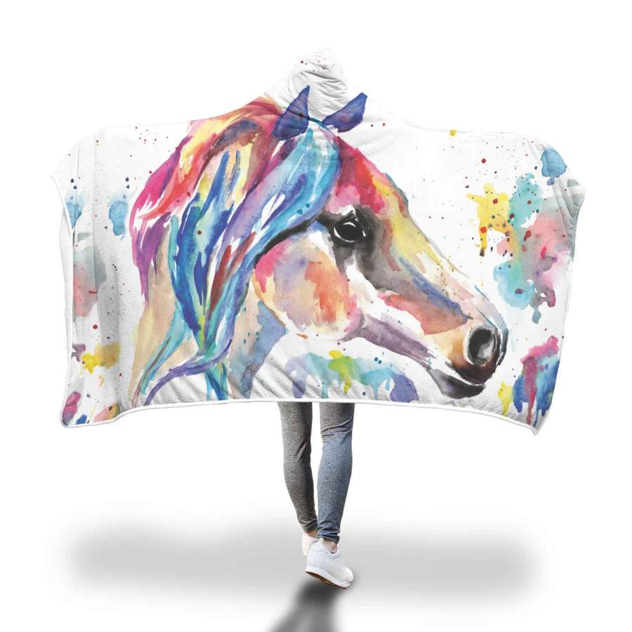 Watercolor Horse Hooded Blanket