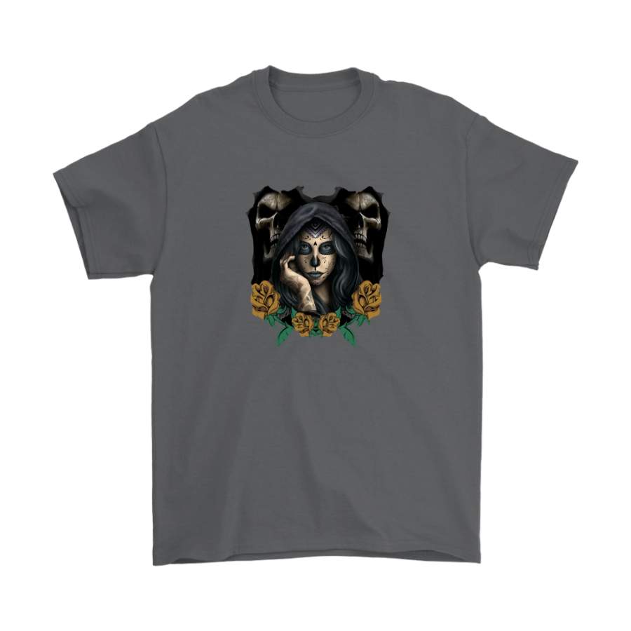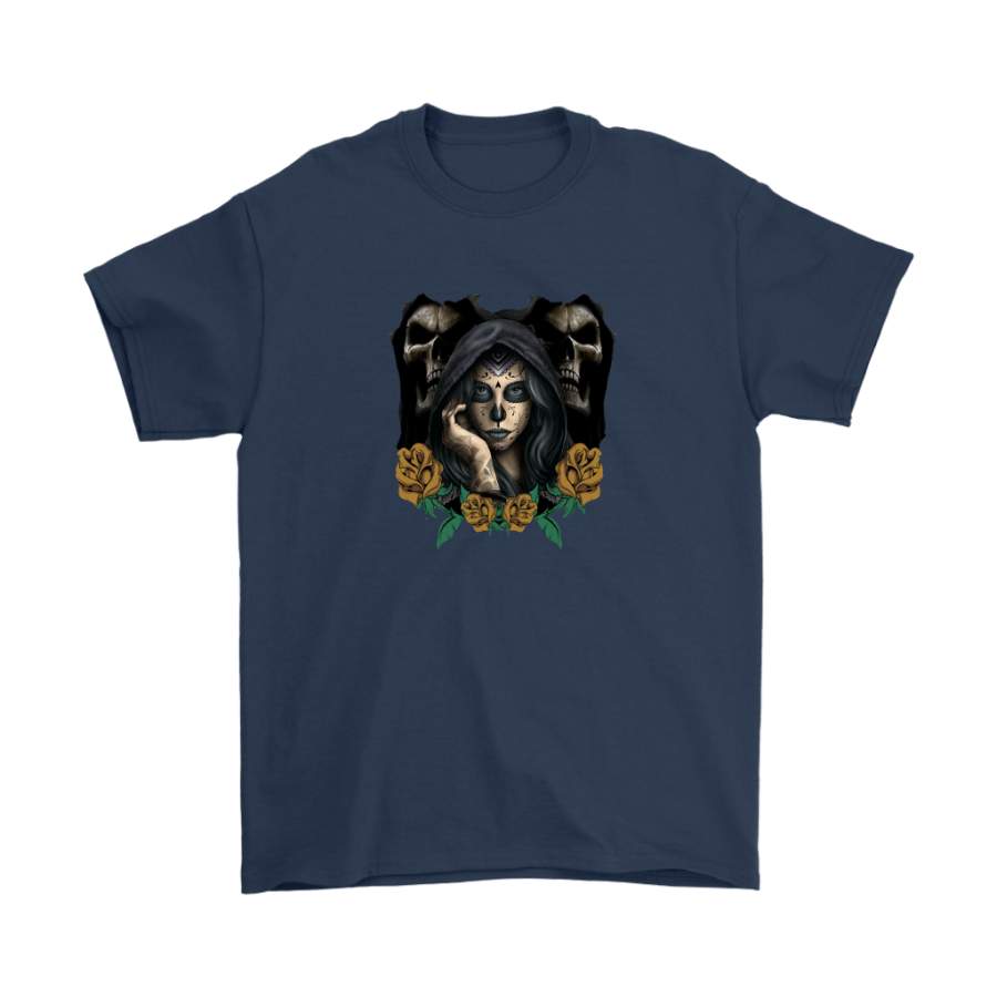 Are you looking for some special gift Yellow Rose Sugar Skull Tees for your friends, your father, your mother, son, boyfriend, girlfriend? We have this idea for you. This product Yellow Rose Sugar Skull Tees is perfect for you. Our T-shirt made of ringspun cotton for smoothness and body, and added rayon and polyester for extra stretch, drape, and breathability, this will be your new favorite t-shirt.